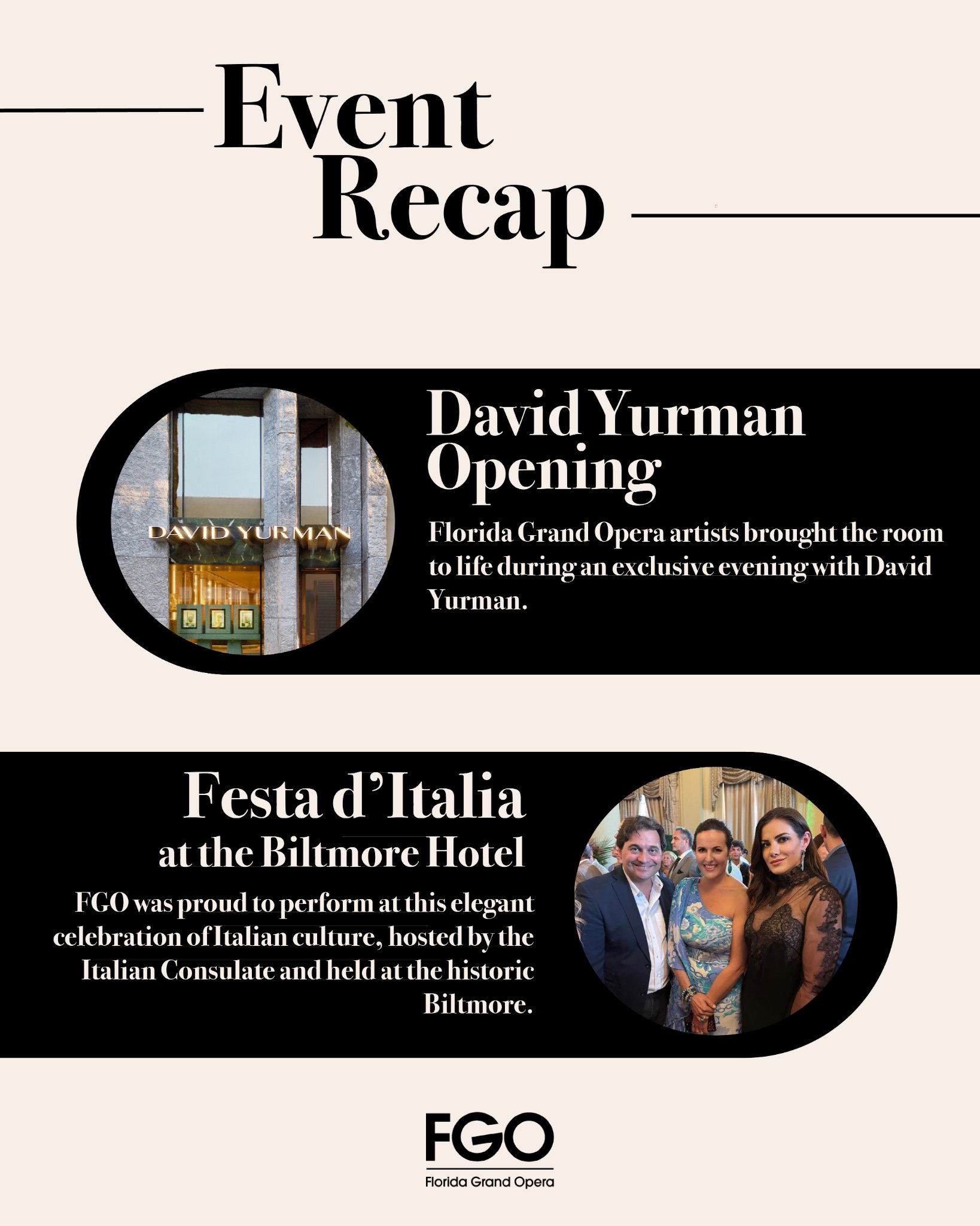 As part of the PR team at Florida Grand Opera, I helped shape how one of South Florida’s oldest cultural institutions communicates its story. I created a full suite of public-facing materials from dress rehearsal promotions and educational workshops to community events, newsletters, and donor recaps. Every piece balanced clarity, brand identity, and audience engagement.My work supported FGO’s mission to make opera accessible, modern, and connected to the community. I collaborated with artists, coordinators, and administrators to translate performances, outreach, and milestones into compelling visuals and messaging.