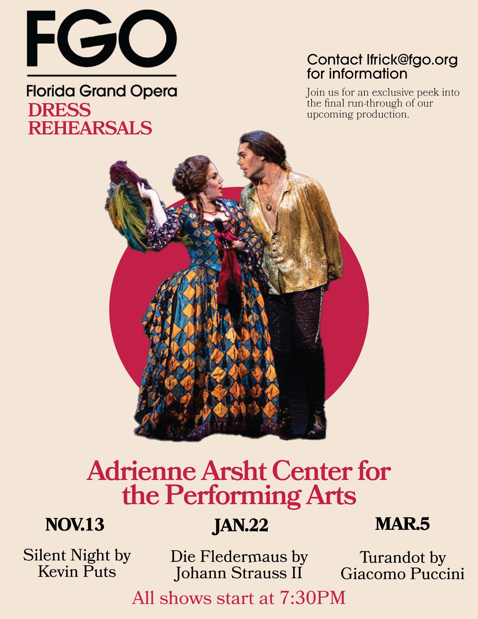As part of the PR team at Florida Grand Opera, I helped shape how one of South Florida’s oldest cultural institutions communicates its story. I created a full suite of public-facing materials from dress rehearsal promotions and educational workshops to community events, newsletters, and donor recaps. Every piece balanced clarity, brand identity, and audience engagement.My work supported FGO’s mission to make opera accessible, modern, and connected to the community. I collaborated with artists, coordinators, and administrators to translate performances, outreach, and milestones into compelling visuals and messaging.