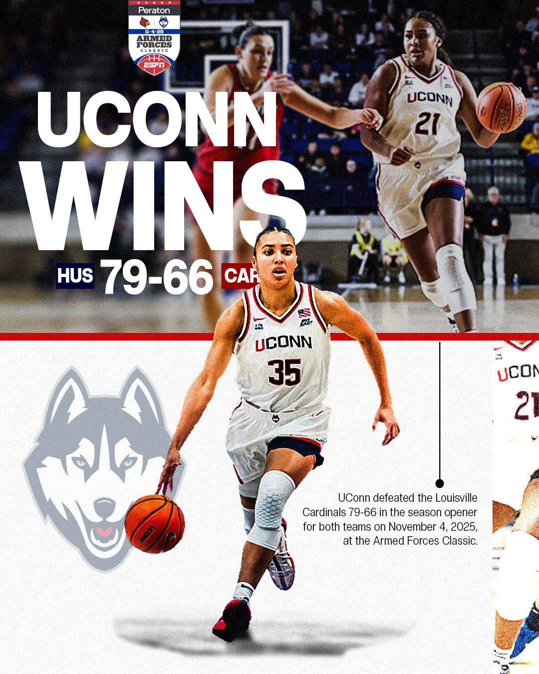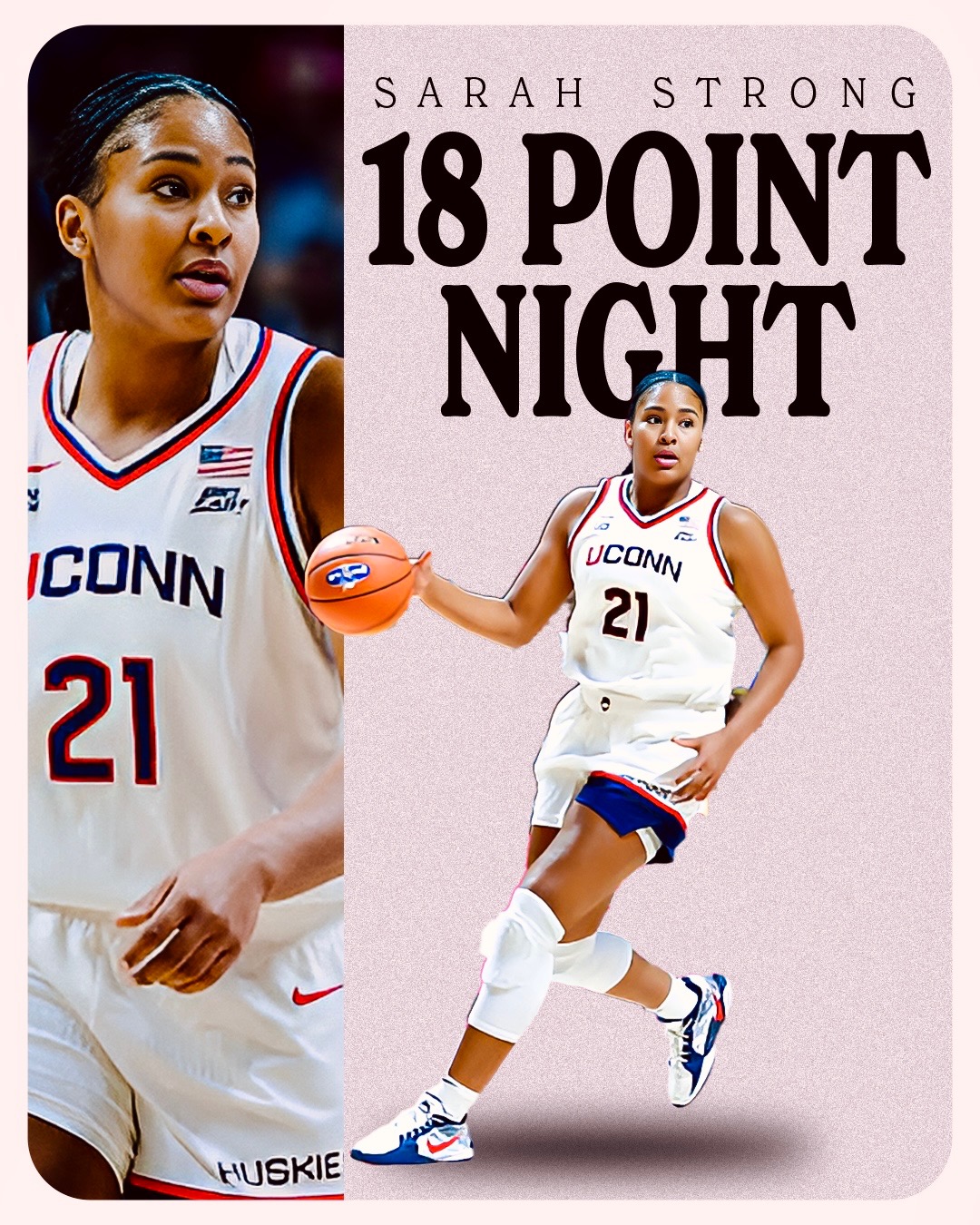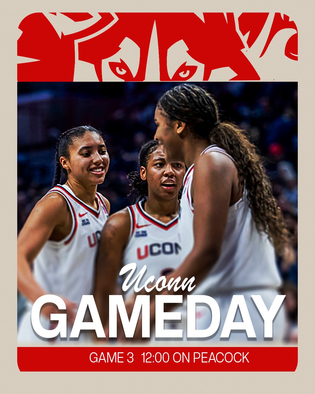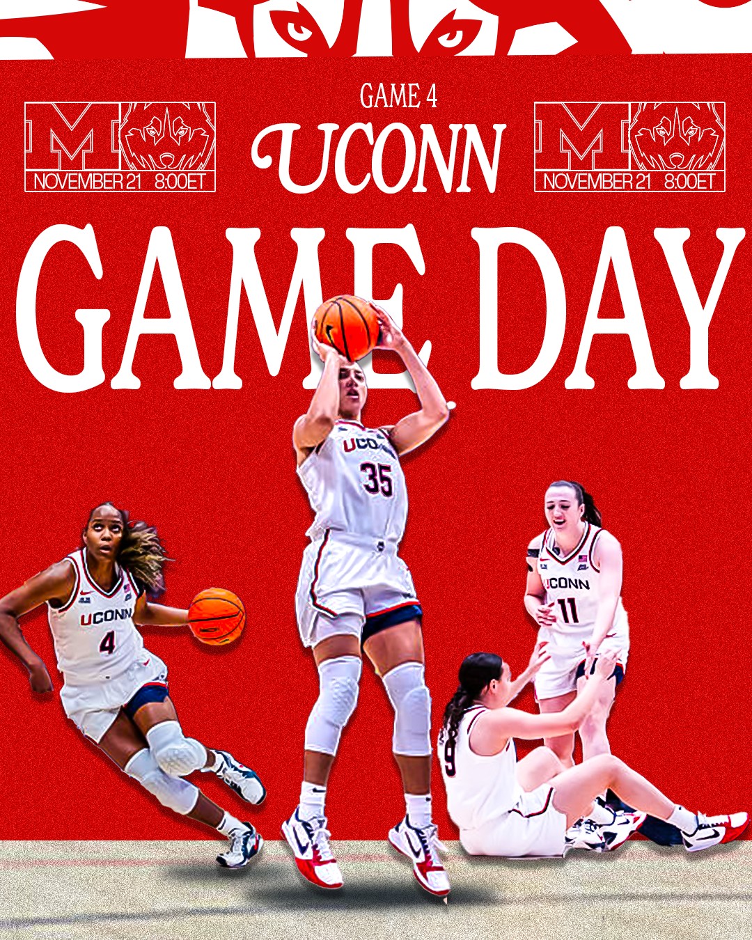 For the UConn 2026 Women’s Basketball season, I created a series of game-day graphics, player highlights, and post-game recaps. This identity leans into UConn’s iconic red and white palette, pairing strong serif type with energetic player cutouts to capture the intensity and legacy of the program.