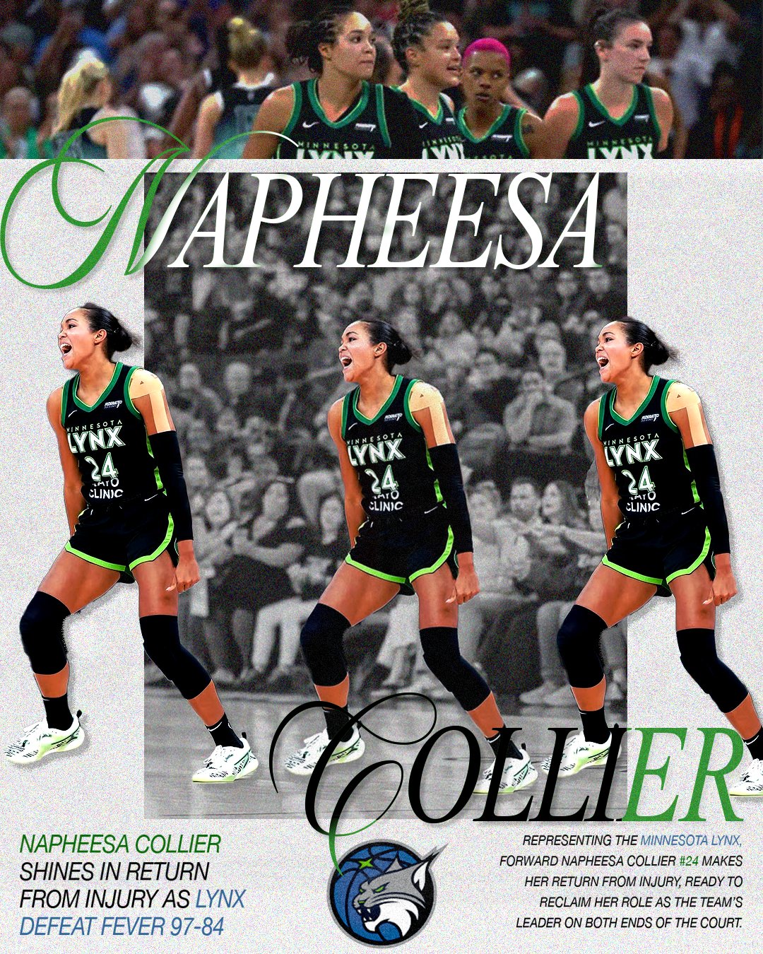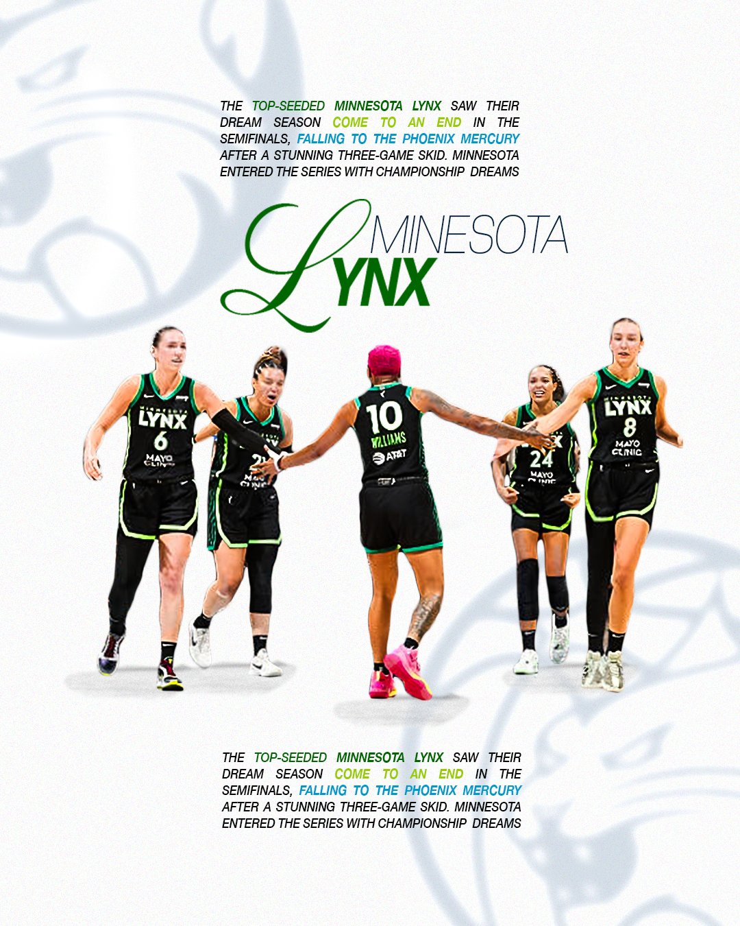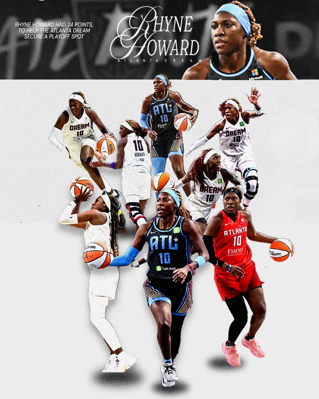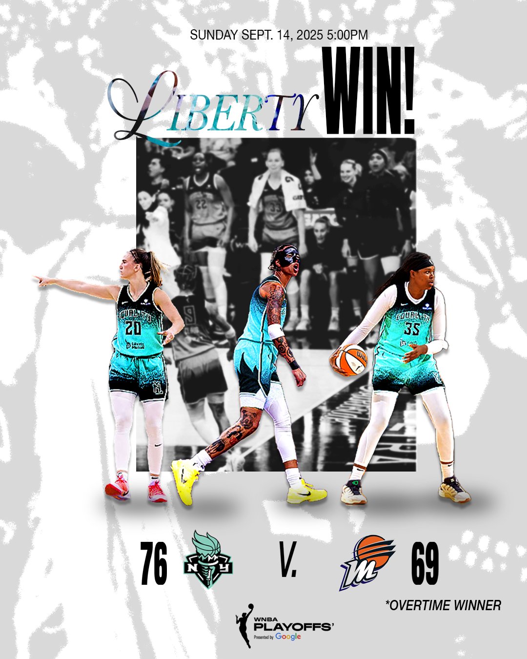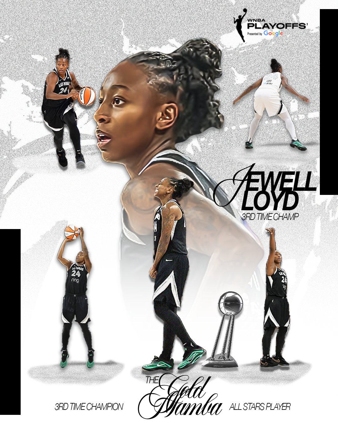 This WNBA design series highlights key playoff moments, game outcomes, and standout athletes through bold, narrative-driven graphics.